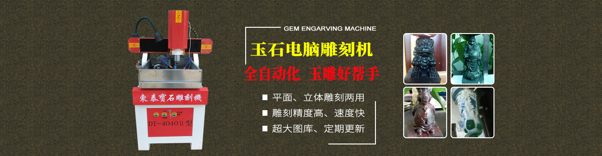 東泰生產(chǎn)出的寶石機械設(shè)備可用于加工晶體雜石、瑪瑙玉石、人造石、其他石類及貝殼、骨頭化石等等,加工出的產(chǎn)品孔位精確、損耗小、速度快、效率高;雕刻品細致、精美,大大降低了成本,提高了效率,深受寶石行業(yè)商家的歡迎。